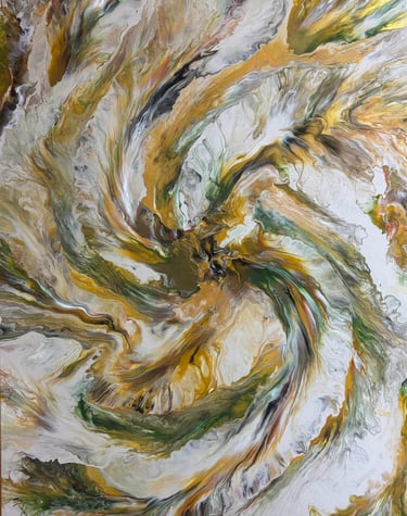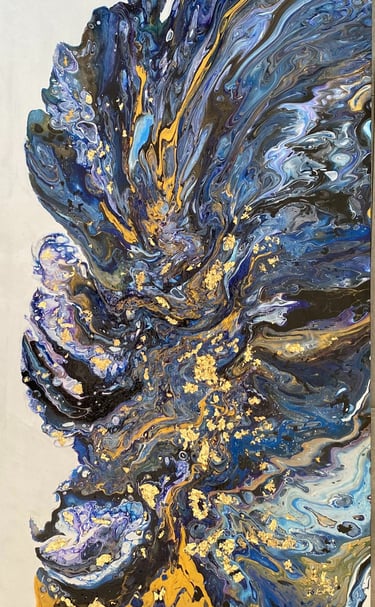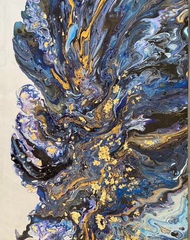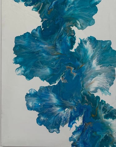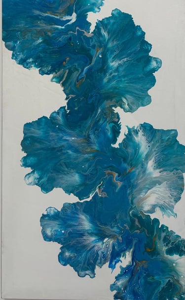 Explore Muni's stunning paintings inspired by roses and crystals.