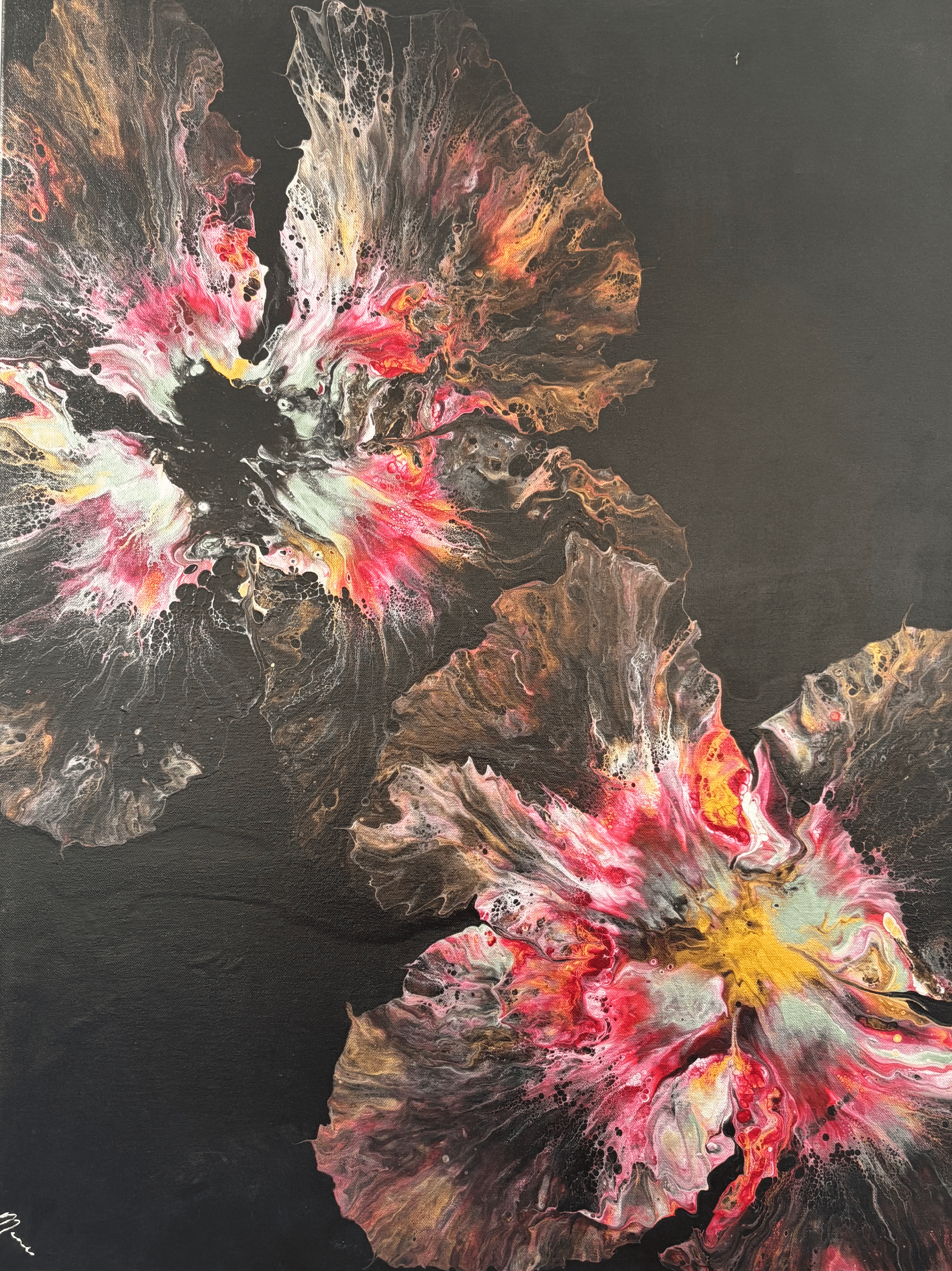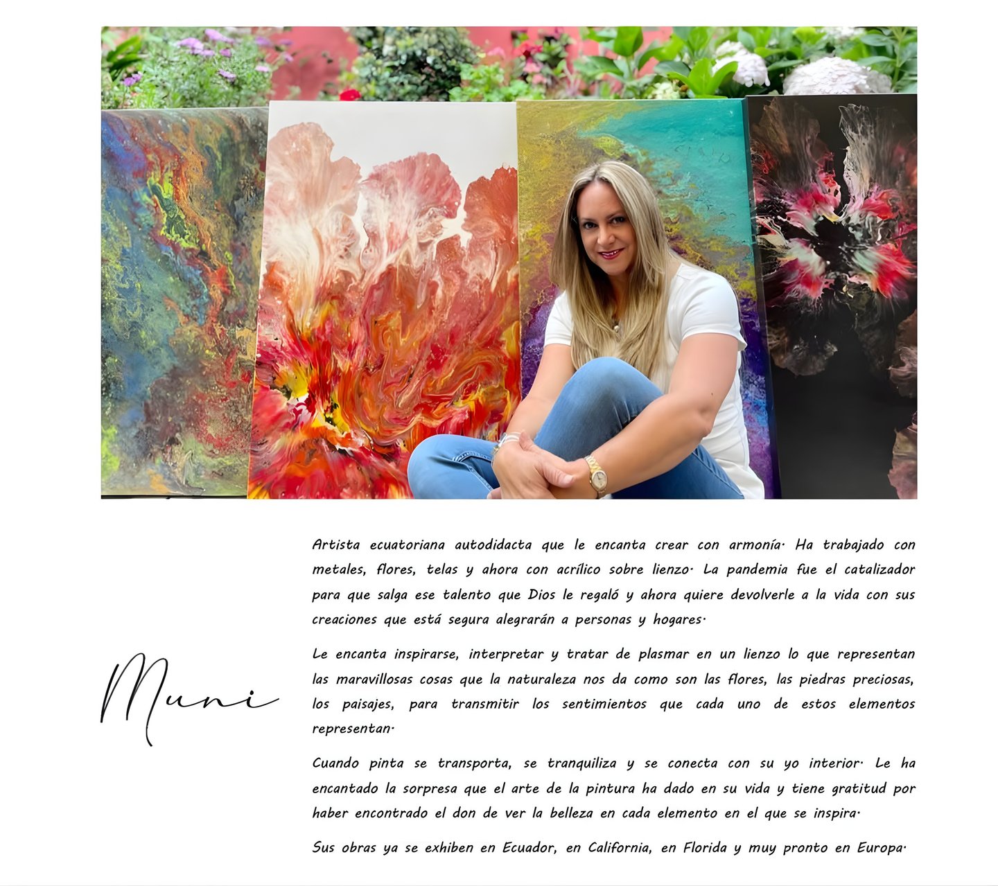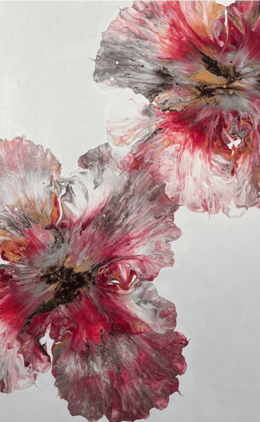 Explore Muni's stunning paintings inspired by roses and crystals.