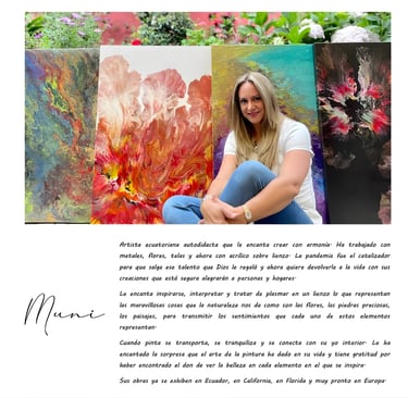 Explore the artistic journey of Muni, inspired by the beauty of roses and crystals, creating elegant, immersive artwork that explores the textures of wood, canvas, surfboards, tables, charcuterie boards, and anything you can imagine.